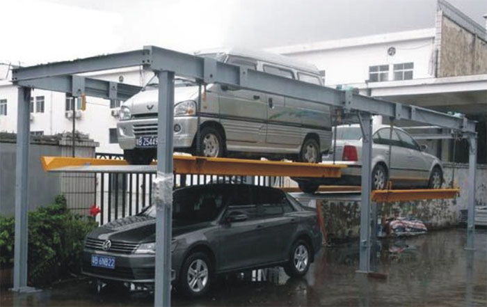 该设备充分利用空间,一个车位能停两辆车。上面层载车板可上下升降:地面层无载车板,地面层车开出后,上方的载车板下降到地面层,完成存取过程。